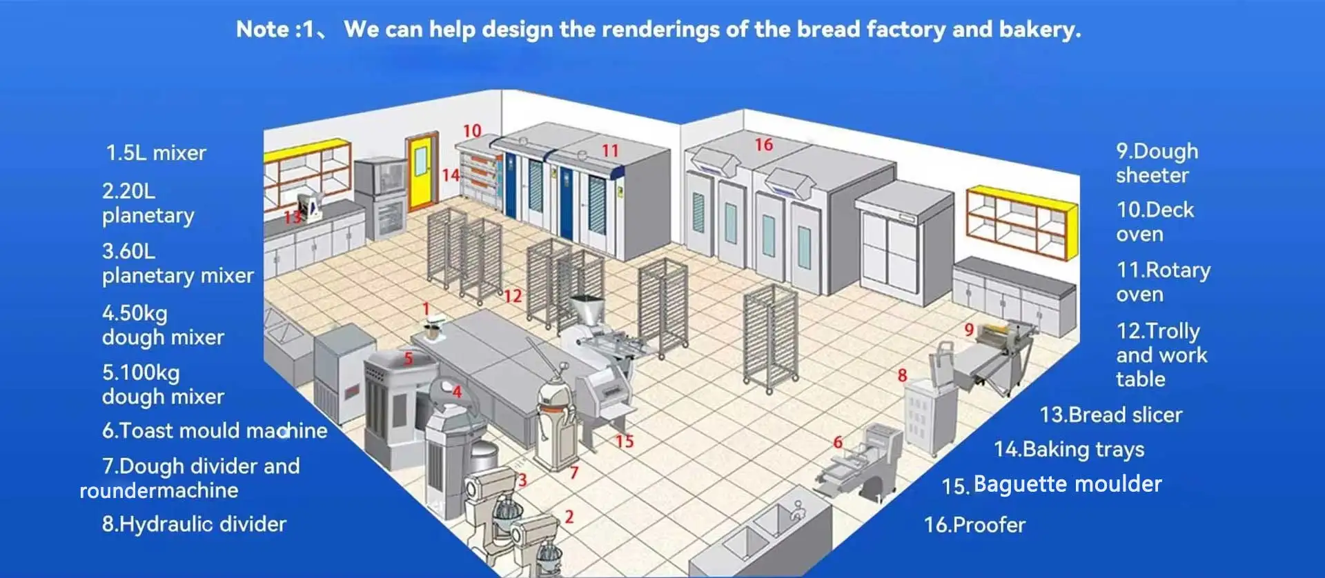Productos principales:Horno rotatorio de aire caliente, máquina de pasteles y galletas, mezclador de masa, línea de producción de pan, línea de producción de pastel de Luna